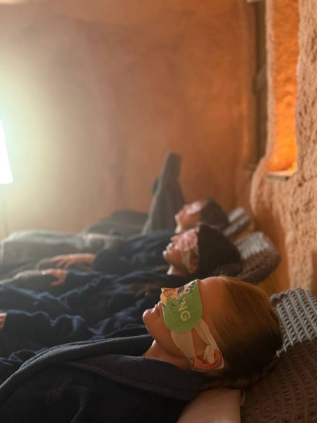 Vor Beginn Ihres Aufenthalts in der Salzgrotte können Sie optional eine selbstwärmende Augenmaske erwerben.